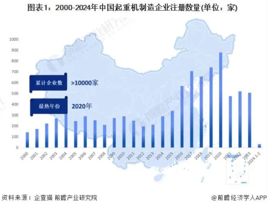 ——近幾年起重機(jī)制造企業(yè)注冊(cè)數(shù)量有所下滑