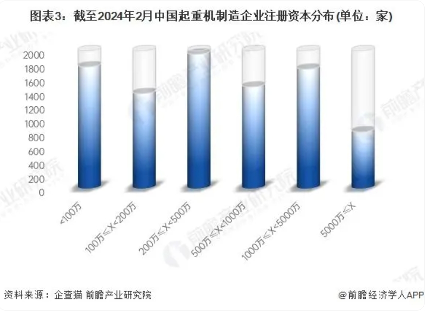 ——起重機(jī)制造企業(yè)注冊(cè)資本在500萬以上的數(shù)量占比超50%