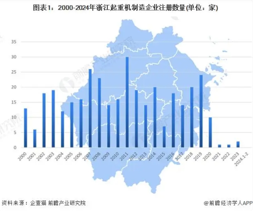 ——近幾年浙江新注冊(cè)起重機(jī)制造企業(yè)數(shù)量下降