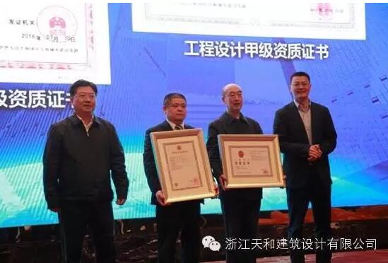 天和設(shè)計院做為大東吳建設(shè)集團戰(zhàn)略合作伙伴,董事長韓結(jié)華上臺領(lǐng)取工程設(shè)計行業(yè)甲級資質(zhì)證書。