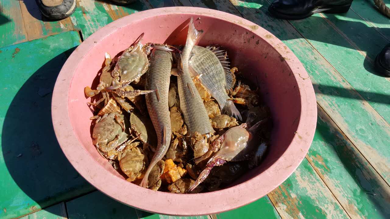 第二天,天公作美,我們出海捕魚,體驗海邊城市不一樣的生活。我們坐著漁船,以漁民們傳統(tǒng)的捕魚方式,豐收了各式各樣的海味,體驗了一回“海上人家”的感覺。